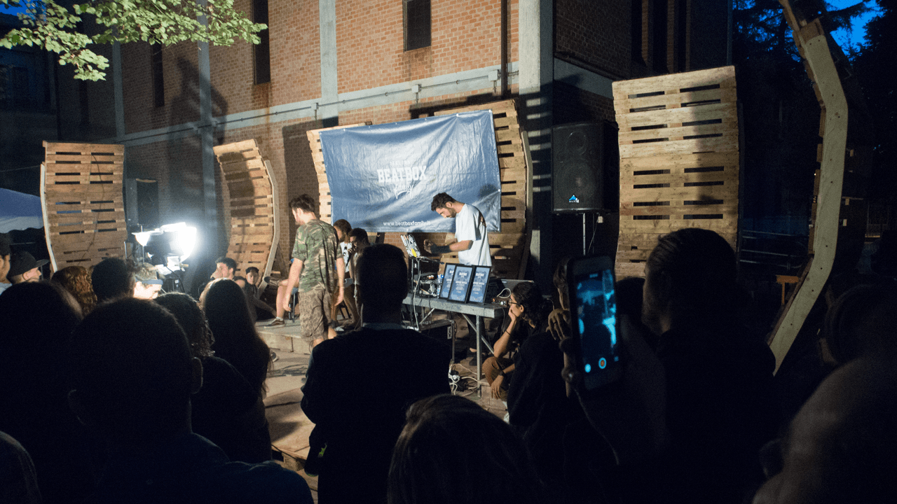 Il progetto Arena è un piccolo gioiello che appartiene alla storia di Ar.co, nato nell’ambito del Restart Urban Festival di Imola e costruito più volte negli anni con leggere variazioni formali e di fruizione; il rapido assemblaggio e smontaggio hanno permesso la conservazione dei componenti separati dai pallet, con minimo ingombro, e di conseguenza il loro riutilizzo a distanza anche di tre anni dalla loro realizzazione iniziale.