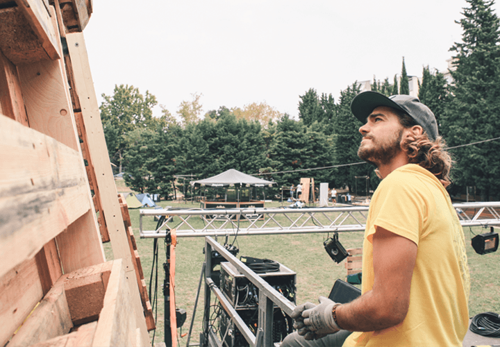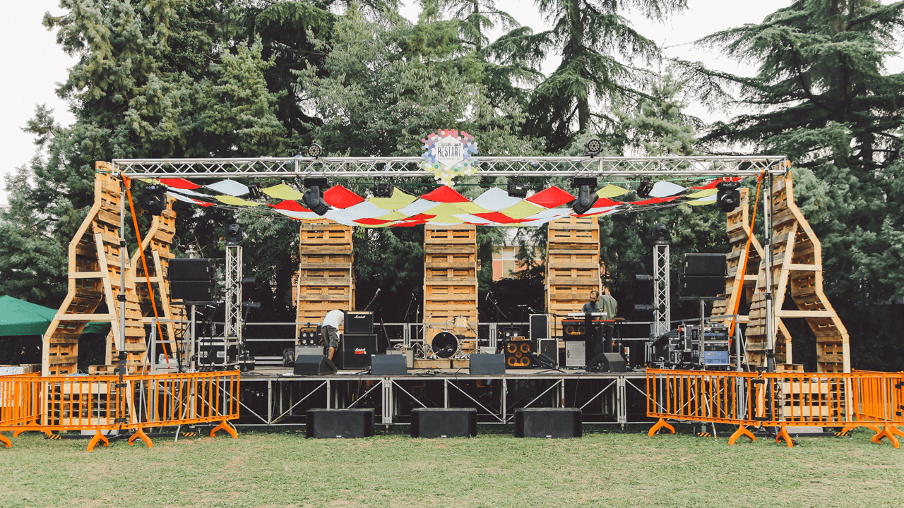 Restart Urban Festival è la realtà itinerante intorno alla quale la nostra squadra è nata, in cui abbiamo cresciuto la nostra passione per il lavoro artigianale insieme all’interesse per l’aggregazione e l’innovazione sociale. Dal 2012 abbiamo avuto occasione di sperimentare numerose tecniche e materiali, come volontari, arrivando dopo sei anni ad avere gli strumenti per allestire per la prima volta il Main Stage della manifestazione.