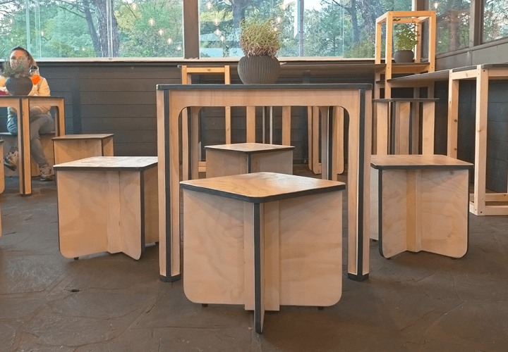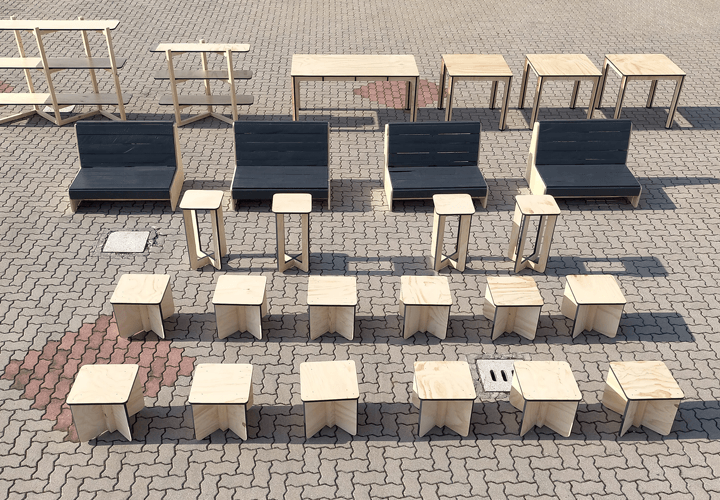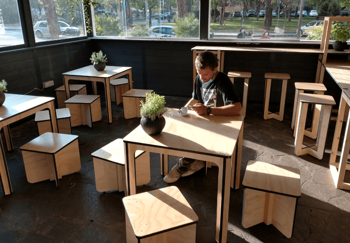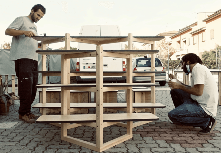 Oltre la metà dei complementi di arredo proposti in questo allestimento sono stati sviluppati ad hoc per lo spazio, ma vanno a costituire la base di partenza della linea di arredo Made in Ar.co che ben si presta all’allestimento di spazi pubblici e privati, con eleganza e funzionalità.