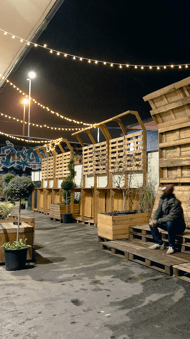 L’allestimento dello spazio esterno presso Zapap Officine Urbane nasce nell’autunno del 2019 per soddisfare diverse esigenze di utilizzo dello spazio a disposizione. Il progetto ZOU ha riaperto uno spazio che era già stato punto di ritrovo per la comunità del quartiere, in un capannone nella prima periferia di Bologna, per tenervi eventi di vario tipo oltre a permettere attività con cadenza regolare; tra gli altri concerti e manifestazioni culturali, ed un mercato agricolo a chilometro zero.